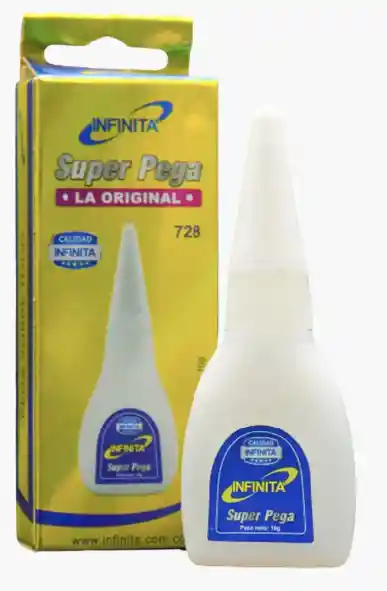 Super Pega Infinita es un adhesivo instantáneo de alta calidad, formulado con cianoacrilato para garantizar una fijación fuerte y duradera en una amplia variedad de materiales. Su pegado ultrarrápido en solo segundos lo convierte en la solución ideal para reparaciones rápidas y proyectos de bricolaje. 🔹 Adhesión extra fuerte y de secado rápido. 🔹 Compatible con metal, plástico, vidrio, madera, porcelana, papel, cuero y más. 🔹 Fórmula transparente para un acabado limpio y profesional. 🔹 Ideal para reparaciones en el hogar, manualidades y uso profesional. 🔹 Fácil de aplicar y con una vida útil de hasta 1 año en condiciones óptimas.