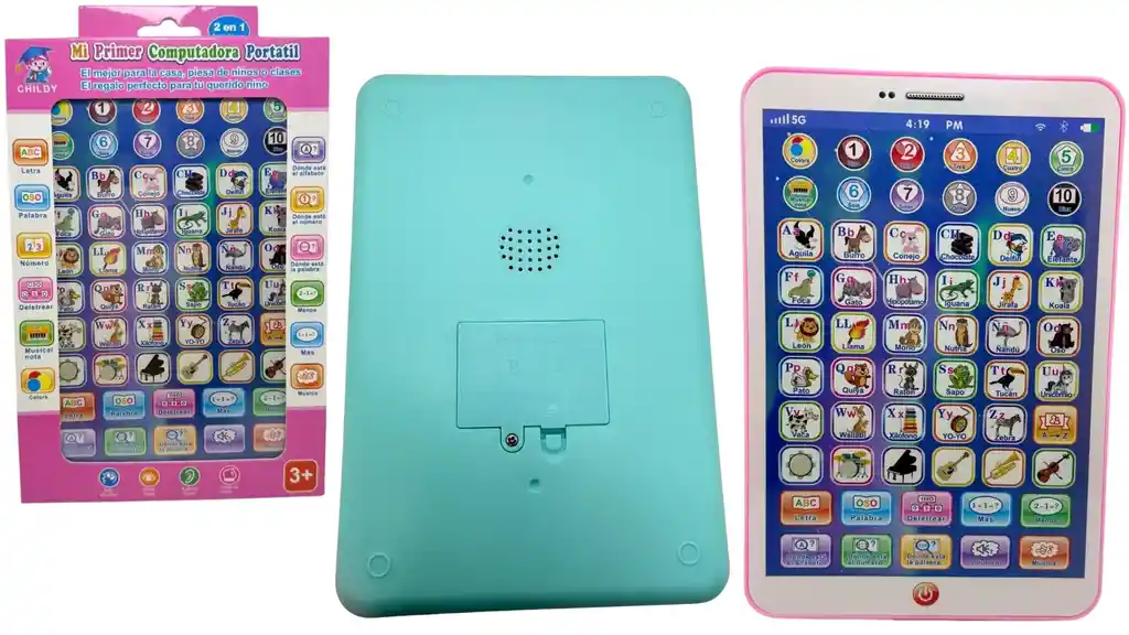 REF: CD329 La Tablet Didáctica es un juguete educativo diseñado especialmente para estimular el aprendizaje de los más pequeños de una forma divertida e interactiva. Habla en español e inglés, permitiendo a los niños aprender los números hasta el 10, el abecedario completo y responder preguntas sobre letras, palabras y números. Cuenta con 14 funciones diferentes, sonidos llamativos y una pantalla con botones sensibles al tacto que facilitan la interacción. Ideal para desarrollar habilidades cognitivas, mejorar la coordinación mano-ojo y fortalecer la memoria auditiva y visual. Su diseño colorido y resistente la hace perfecta para el uso diario. Disponible en colores azul y rosado. Medidas: 20 cm de alto x 13.5 cm de largo. CARACTERÍSTICAS: Idiomas: Español e Inglés 14 funciones interactivas Números hasta el 10 Abecedario completo Preguntas y respuestas Material resistente y liviano Sonido y botones táctiles Colores: azul y rosado Condición del producto: Nuevo ¿QUÉ INCLUYE TU PRODUCTO? Tablet Didáctica para niños bilingüe (Español e Inglés) con sonido y pantalla interactiva. Funciona con baterías (no incluidas). Ideal como herramienta de aprendizaje o regalo educativo. El mejor regalo para niños y niñas que están comenzando a descubrir las letras y los números. ZZZZZZZZZZZZZZZZZZZZZZZZZZZZZZZZZZZZZZZZZZZZZZZZZZZZZZZZZZZZZZZZZZZZZZ MÁS DETALLES: Condición: Nuevo MÁS INFORMACIÓN DE NOSOTROS Somos INVERSIONES MAZUGI, importadores directos desde China. Cumplimos con distribuir a todo el país. Estamos ubicados en Bogotá, somos tienda virtual y física. PRODUCTOS AL POR MAYOR Y DETALLE. Somos una empresa importadora y comercializadora de productos de alta calidad de varias categorías como: belleza, tecnología, hogar, juguetería, cuidado personal, entre otras.