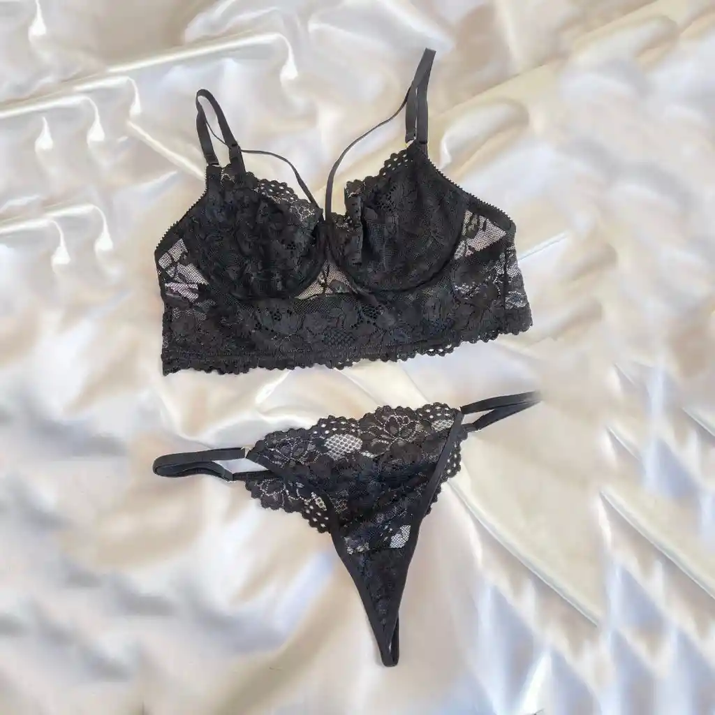 Nuestro Set GIOVANNA está lleno de sensualidad. Bustier negro con detalles de tiras en el pecho, en encaje con forro en su interior que no deja que se transparente nada y puedas usarlo de forma exterior con tu BLUSA CARLOTA. Posee varillas para mayor soporte y cargadera delicada y graduable. Herrajes con baño de oro. Paty tipo hilo con algodón en la parte intima.