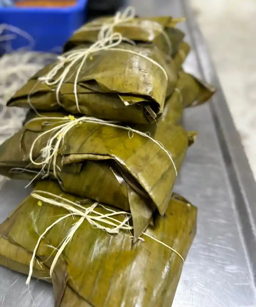 Tamales mixtos, hechos con arroz, arveja verde, promasa, pollo y cerdo. Peso aproximado entre 750 a 850 g. Calentar al vapor o en un poco de agua, a fuego lento por 30 minutos aproximadamente