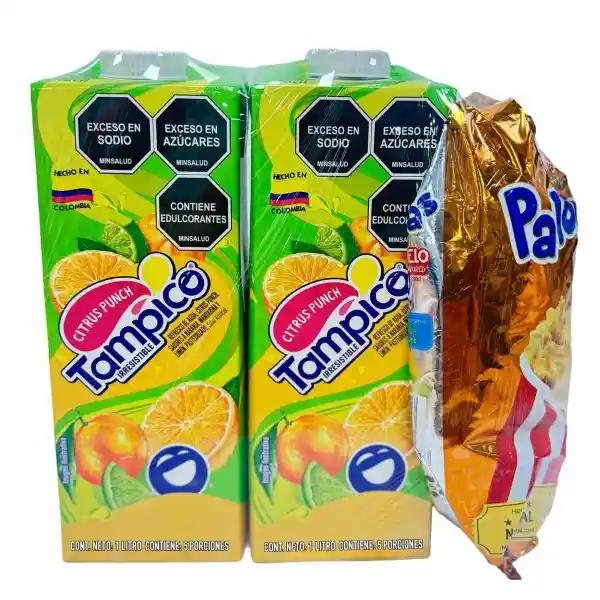 Contiene 3 Unidades. Tampico Bebida Surtida 2 Und de 1000 mL c/u + Palomitas de Maíz 1 Und.
