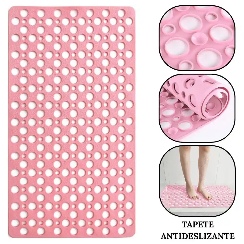 Tapete Alfombra Antideslizante Para Baño Renueva tu baño con estilo y funcionalidad gracias al Tapete Antideslizante para Baño, diseñado para brindar una pisada segura, suave y absorbente justo donde más lo necesitas. Ya no tendrás que preocuparte por resbalones ni por pisos mojados. Características: - Superficie ultrasuave y cómoda: Fabricado con materiales de alta calidad. - Base antideslizante: Cuenta con una base de goma con ventosas antideslizantes que se adhieren firmemente al suelo, evitando desplazamientos o resbalones peligrosos. - Secado rápido: Gracias a su tejido respirable, el tapete se seca con rapidez, evitando malos olores y proliferación de hongos. - Fácil de lavar: Apto para lavado a mano, sin perder su forma ni textura. Medidas Aproximadas Largo: 78 Cm (Aprox) Ancho: 48 Cm (Aprox)