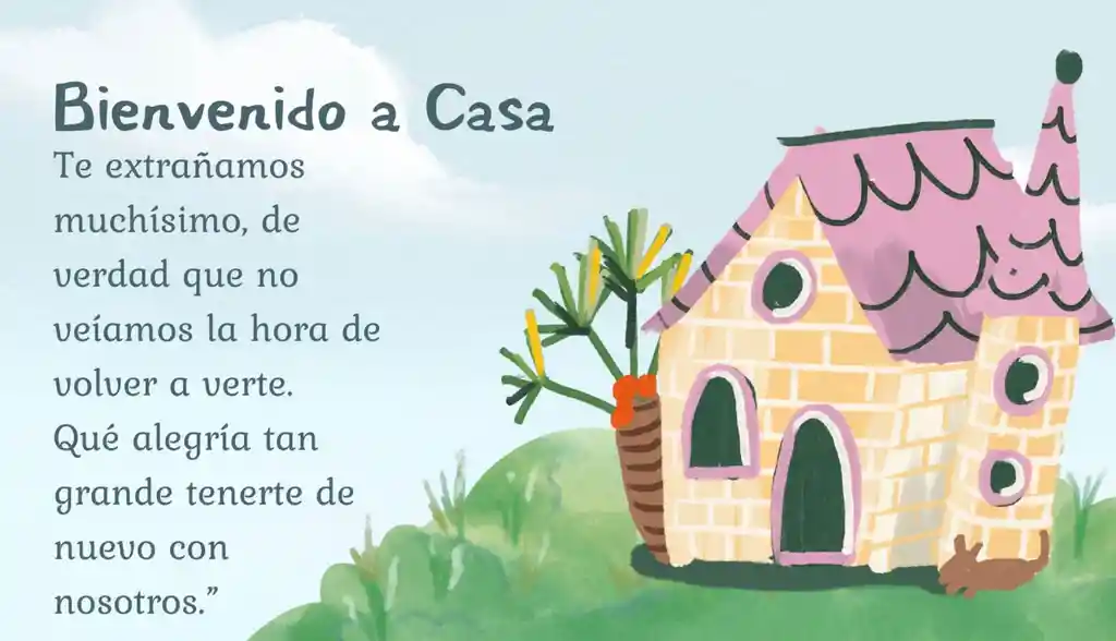 Tarjeta en sobre con mensaje personalizado de bienvenida a casa