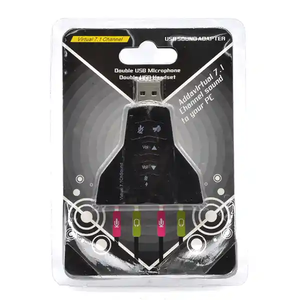 Tarjeta de sonido USB 7.1 plus, este producto cuenta con las siguientes características: -Conexión USB. -Doble puerto de micrófono y parlantes. -Plug and play.