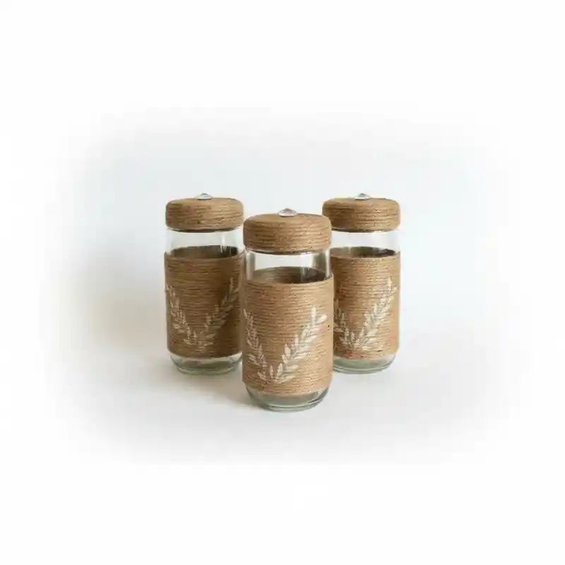 Tarros de vidrio para cocina con adorno en hilo fique, set de 3