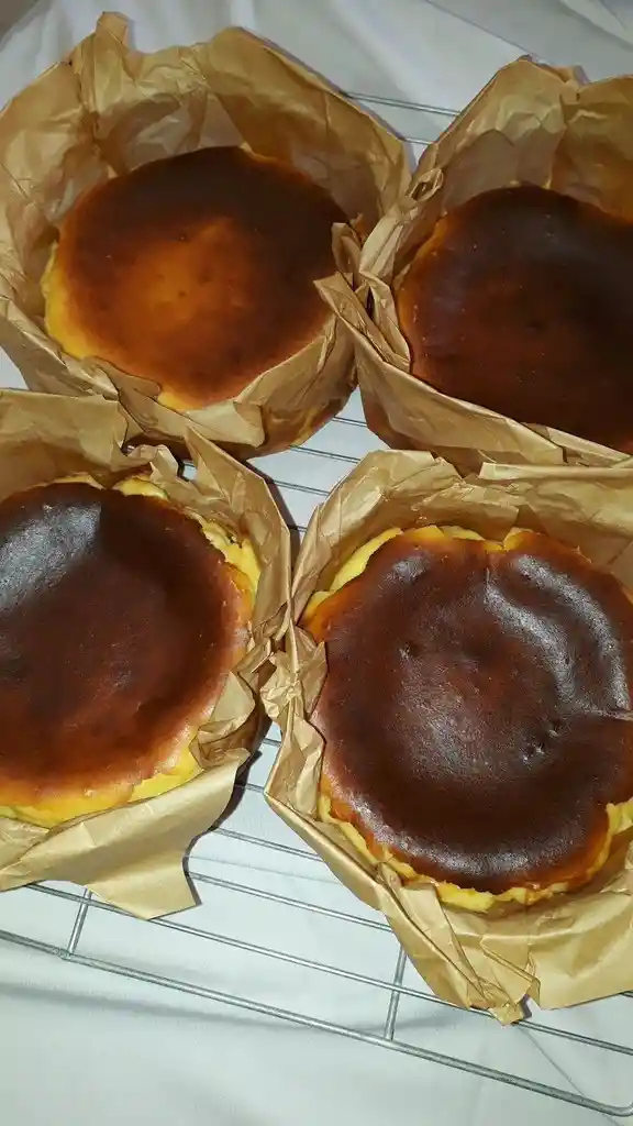 Nuestra tarta vasca clásica, exterior dorado y centro suave y cremoso.