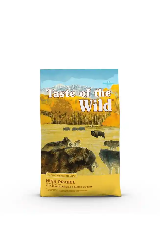Taste of the Wild High Prairie Canine Recipe es un concentrado para perros adultos que aportará los niveles de energía y nutrientes necesarios para mantener sanos, activos y vitales a perros adultos. Su fórmula más natural, equilibrada y similar a que un perro adulto encontraría en la naturaleza está elaborada con carnes asadas de bisontes y venados criados en pasto, lo cual aportará un delicioso e irresistible sabor. Tiene un alto contenido de proteína que aportará altos niveles de energía y verduras, frutas y legumbres que aportarán antioxidantes de fuentes naturales, ideales para favorecer un sistema inmunológico fortalecido.