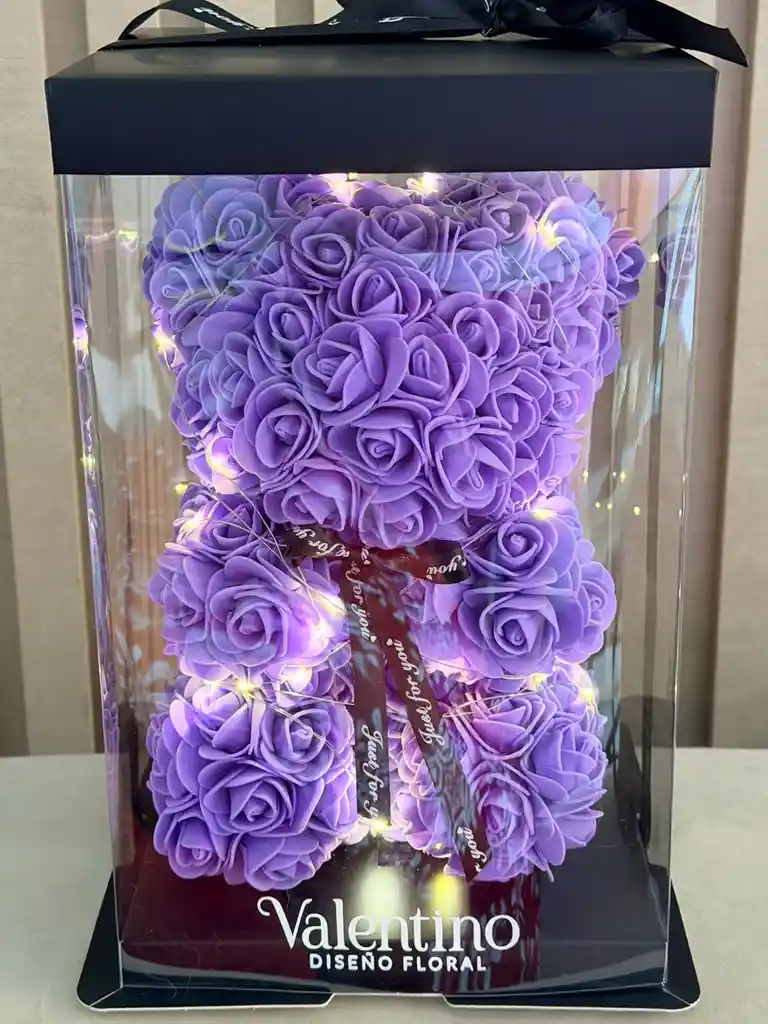 Un oso hecho de rosas lilas combina el simbolismo del oso (protección, amor, fuerza, sabiduría) con el significado de las rosas lila (eternidad, dulzura, encanto, amor a primera vista) para crear un regalo que expresa amor duradero y lealtad, lleno de ternura y magia, ideal para expresar afecto profundo, gratitud o un cariño especial, más allá del amor romántico tradicional, como un "amor eterno" o "magia en el amor"