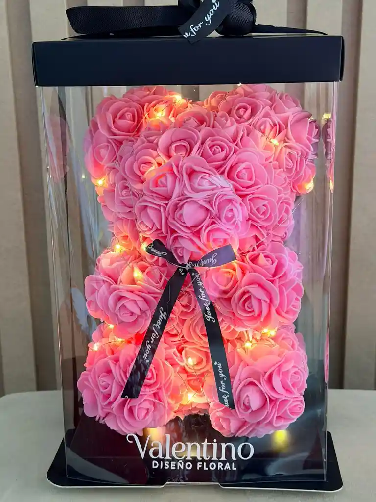 Un oso de rosas color rosa simboliza una combinación de ternura, amor incondicional y afecto, con un énfasis especial en la gratitud, admiración, alegría y dulzura. Es un regalo que expresa cariño de una manera más sutil que las rosas rojas, que representan pasión
