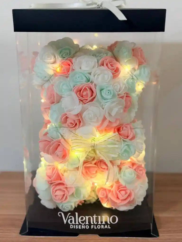 Un oso de rosas es un tierno y duradero regalo hecho a mano, ideal para expresar amor, combinando la forma clásica de un osito de peluche con cientos de pequeñas flores, creando un símbolo romántico y encantador.