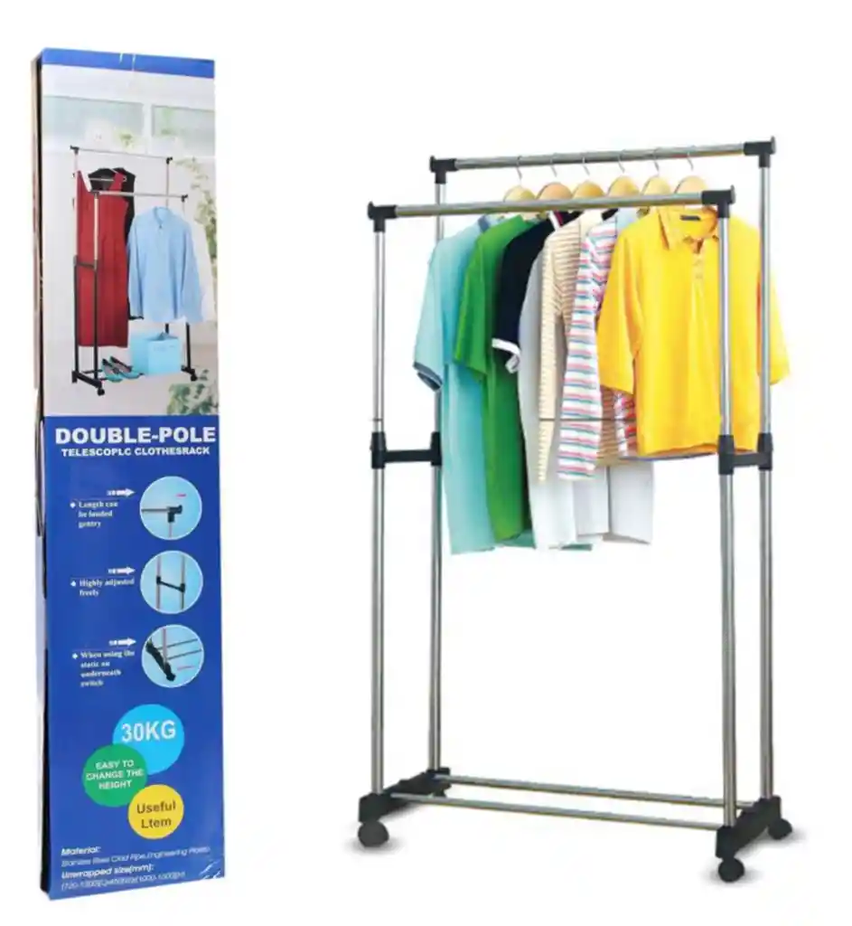Mantén tu ropa siempre organizada afuera o dentro de tu hogar con el ropero rodante doble tubo. Su tubo está hecho con un revestimiento de acero ..