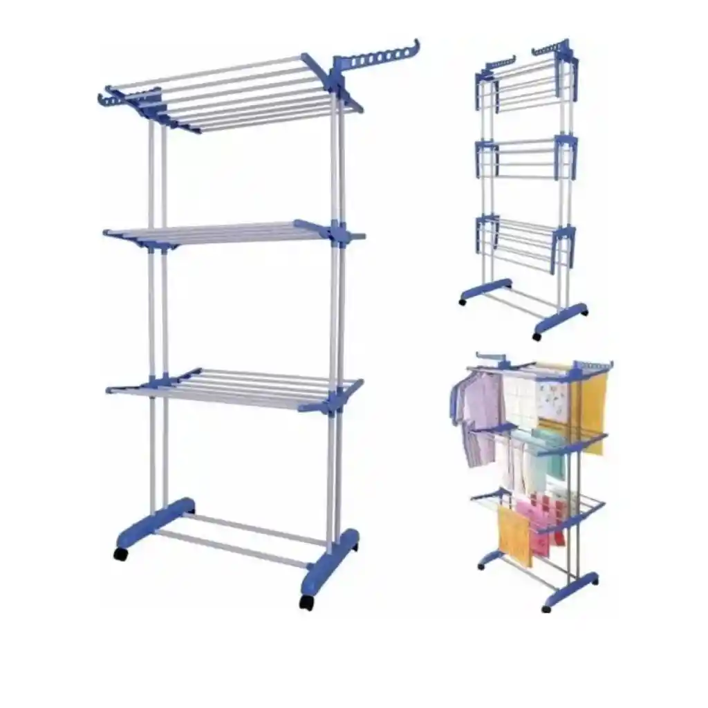 Tendedero de ropa plegable diseñado para secar prendas de forma práctica y ordenada en espacios interiores o exteriores Su estructura es liviana y resistente permitiendo soportar ropa húmeda sin deformarse El sistema plegable facilita guardarlo cuando no está en uso ocupando poco espacio Ideal para apartamentos patios balcones o lavanderías Su diseño estable brinda seguridad durante el uso y permite colgar diferentes tipos de prendas como camisetas pantalones toallas o ropa delicada convirtiéndose en una solución funcional y duradera para el hogar