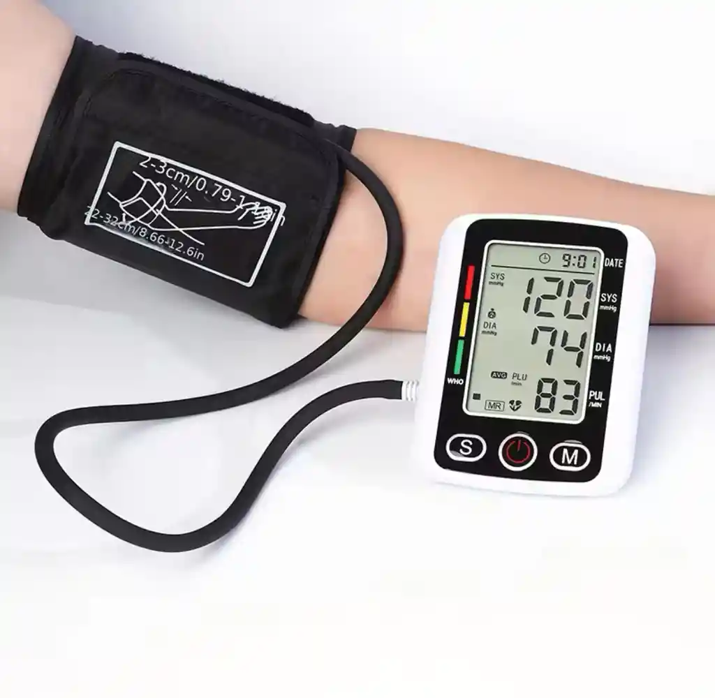 "El monitor de presión arterial cuenta con un sensor que proporciona una lectura precisa y confiable de la presión sanguínea. Su pantalla led grande permite una visualización clara y fácil de los resultados. Ademas de monitorizar la presión arterial, éste dispositivo tambien arroja resutados de la frecuencia cardiáca, brindando una mayor cantidad de información sobre la salud del usuario. Este dispositivo es ideal para uso doméstico, permitiendo monitorear su presión sanguínea y frecuancia cardiáca desde la tranquilidad de su hogar. Tener un tensiómetro a la mano es esencial para monitorear la salud en general, ya que este monitor puede alertar cuando algo no esta bien. La prueba de frecuancia cardiaca IHB puede detectar arritmias, mientras mide la presión arterial, previniendo daños mayores en la salud. En tan solo 60 segundos tendras el grupo de resultados. Gracias a su funcionamientos con pilas puedes llevarlo a cualquier lugar, bien sea de viaje o una salida corta a dar un paseo, cabe perfectamente en tu bolso. Brazaleta ajustable para circunferencia de brazo hasta 32 cm. Cuenta con función de memoria: puede grabar hasta 99 conjuntos de registros de medición para ayudar a memorizar los resultados de las mediciones diarias, además cuenta con 2 modos de usuario. Para su funcionamientos es esencial 4 pilas AAA (no incluidas) o conectar directamente con cable USB para uso continuo. El equipo se apaga automáticamente pasados 3 minutos sin uso. Material: ABS Tamaño: 12.8 x 10 x 5.9 cm Alimentacion: 4 pilas AAA o cable USB Número de grupos de memorias: 2 Usuarios * 99 grupos de resultados Rango de medición: 0 - 280 mmHg Incluye Voz