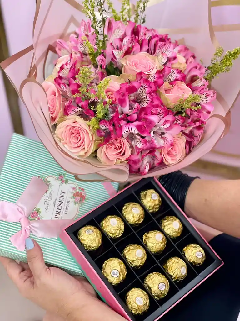 Ramo de rosas mas caja de chocolates