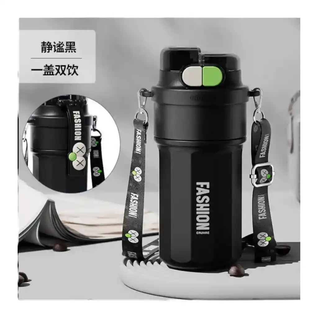 Termo Botella Fashion Termica Con Pitillo Recubierta De Acero Negro