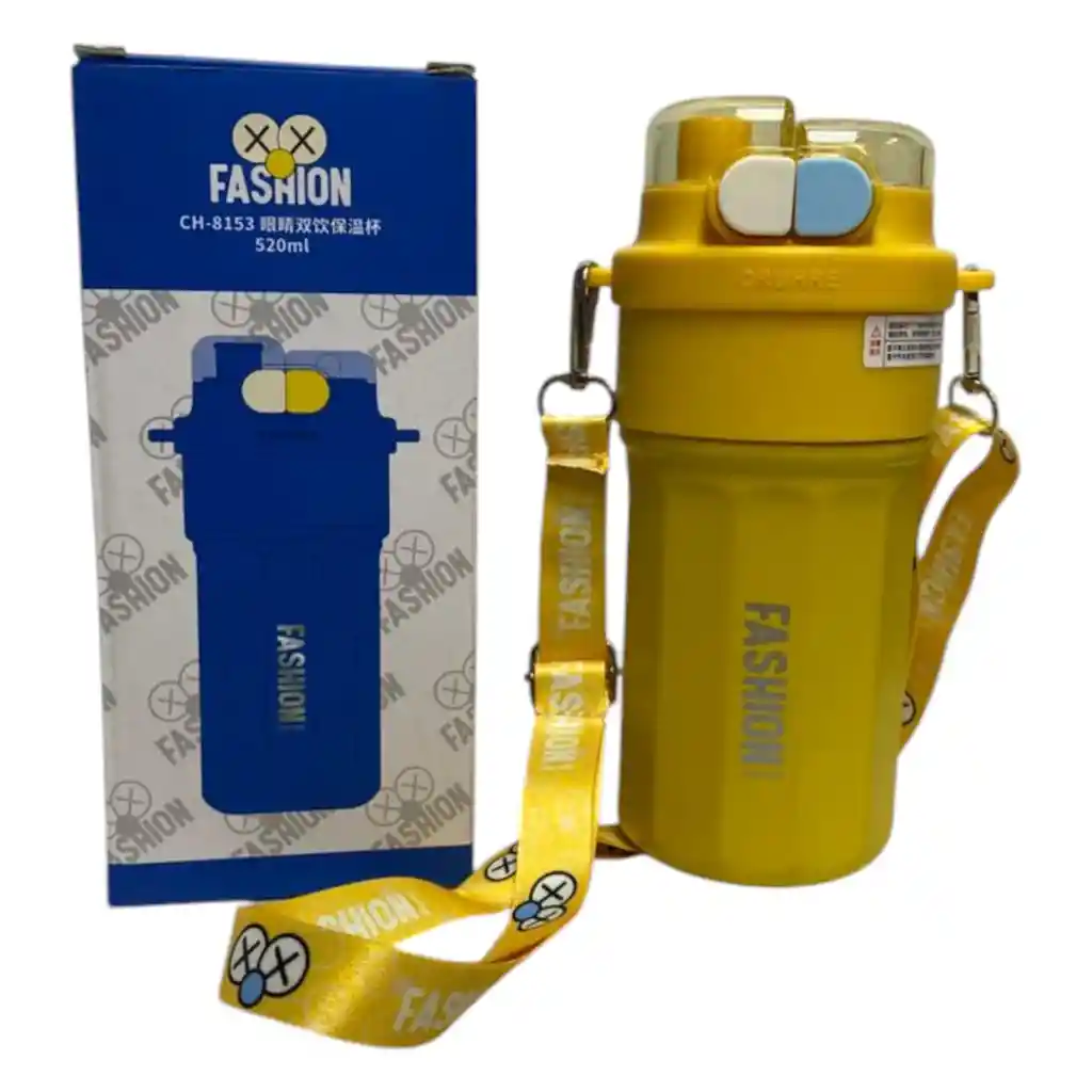 Termo Botella Fashion Termica Con Pitillo Recubierta De Acero Amarillo
