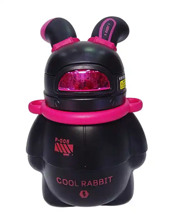 Termo en forma de conejo astronauta llamado cool rabbit, incluye cordon para llevar, material de acero inoxidable, pitillo siliconado y sistema rosca para apertura de tapa,.
