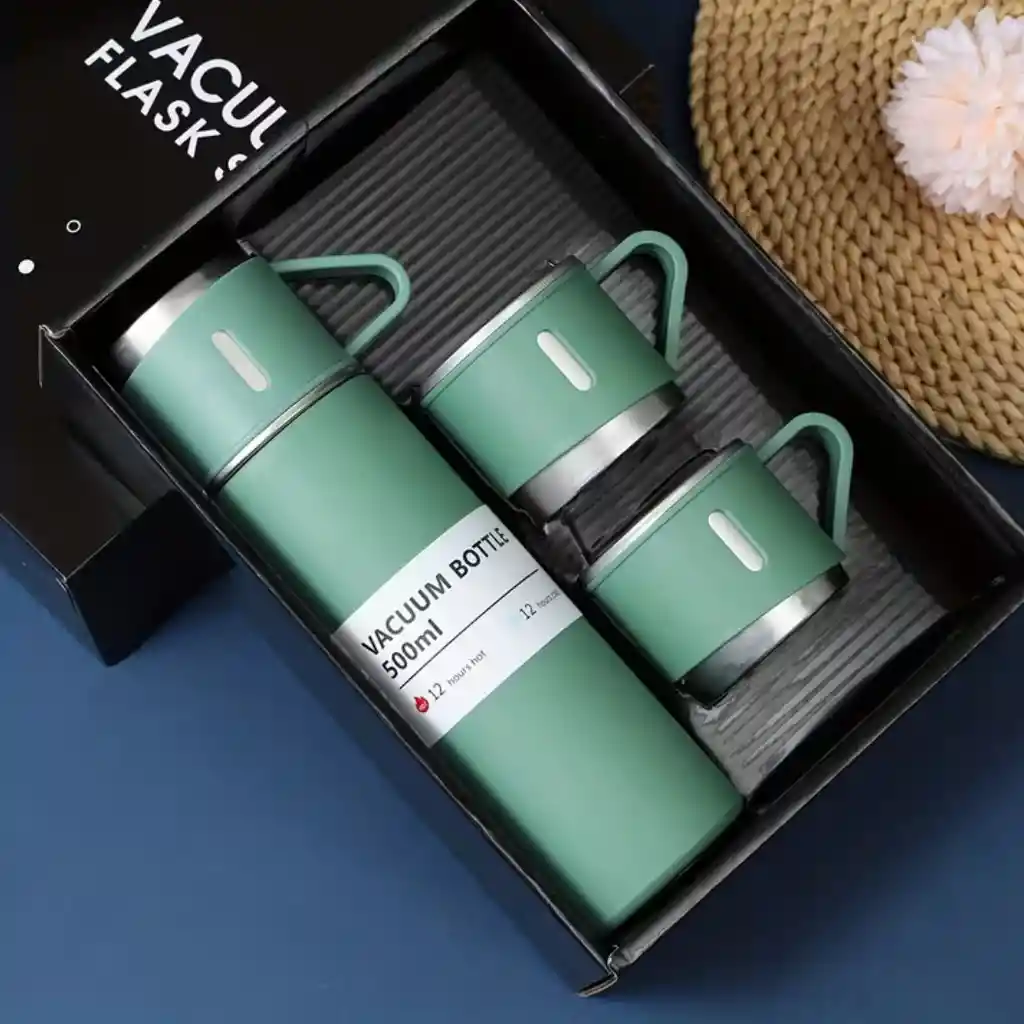 Termo De Acero Inoxidable Con Tres Tasas Verde Claro