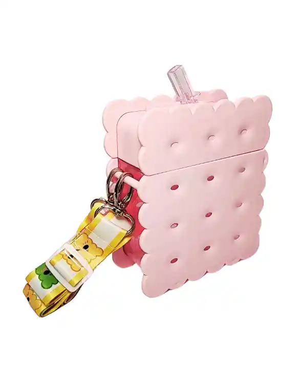 Termo en forma de galleta de plástico siliconado. Incluye correa para cruzarse