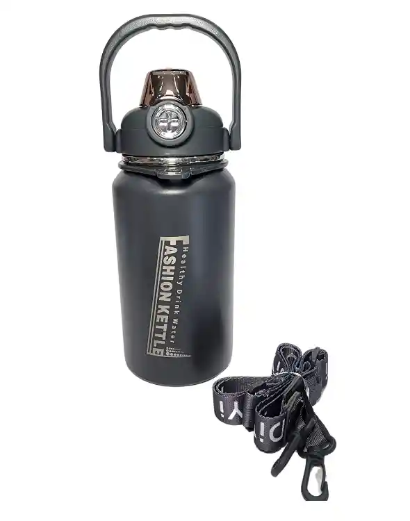 Termo térmico doble boquilla, incluye pitillo siliconado, correa para llevar, ideal para deportes, fitness, hogar y viajes al aire libre.