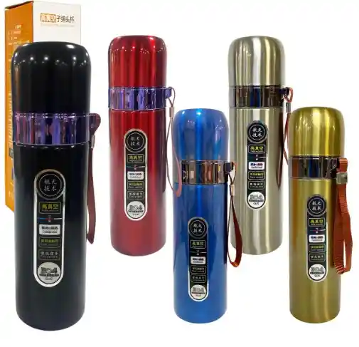 EXCELENTE PARA GUARDAR BEBIDAS FRIAS Y CAALIENTES, GUARDANDO SU TEMPERATURA POR MAS DE 12 HORAS. Características destacadas: • Capacidad: Diseño tipo “bala” que facilita su transporte y agarre. • Aislamiento: Doble pared de acero inoxidable para conservar tus bebidas calientes o frías durante más tiempo. • Material: Acero inoxidable libre de BPA, resistente a golpes y uso frecuente. • Tapa segura: Cierre hermético que evita derrames.