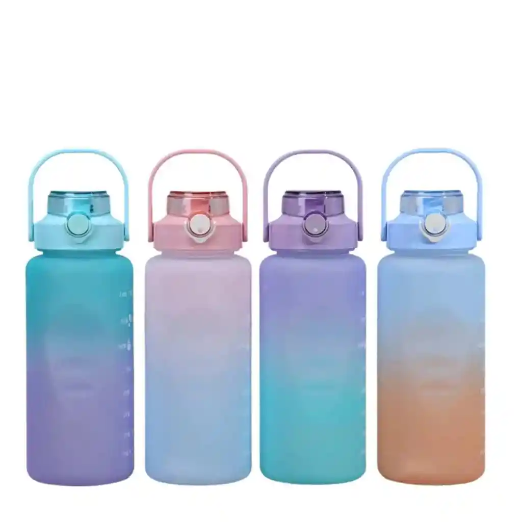 Recuerda que una buena hidratación es la base fundamental para una buena salud. Características -- Diseño de agarre antideslizante. -- Su diseño motiva a la ingesta diaria de agua. -- Se puede incorporar hielo o trozos de fruta en la botella. -- Permite una buena limpieza del producto. -- Contiene pitillo, pero si lo deseas puedes beber directamente de la botella. -- Cuenta con agarre para poder llevarlo a todas partes. -- Capacidad de 2 Litros. -- Material: Plástico. -- Libre de BPA. INCLUYE STICKERS Y PINES