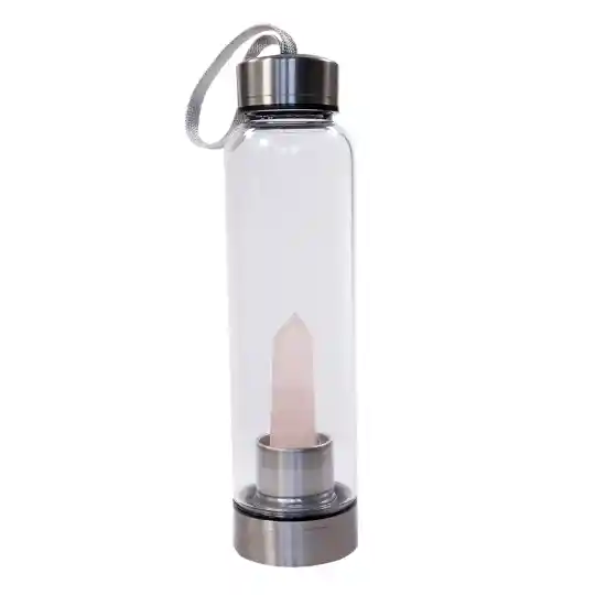Disfruta de tus bebidas con estilo y armonía. Nuestro termo de vidrio con obelisco de cuarzo rosa combina la pureza del vidrio borosilicato con la calidez estética de una piedra natural en forma de obelisco. Con capacidad de 500 ml, tapa de acero inoxidable hermética y base de silicona antideslizante, esta botella es perfecta para el día a día: oficina, gimnasio, viajes o como un obsequio especial. El obelisco de cuarzo rosa viene montado de forma segura en un compartimento (o soporte) dentro del termo, aportando un detalle decorativo y único. El vidrio borosilicato es resistente a cambios de temperatura y fácil de limpiar. Incluye caja regalo y manual de cuidado. IMPORTANTE: el cuarzo rosa es una piedra natural de carácter decorativo. No sustituye tratamientos médicos ni terapias profesionales.