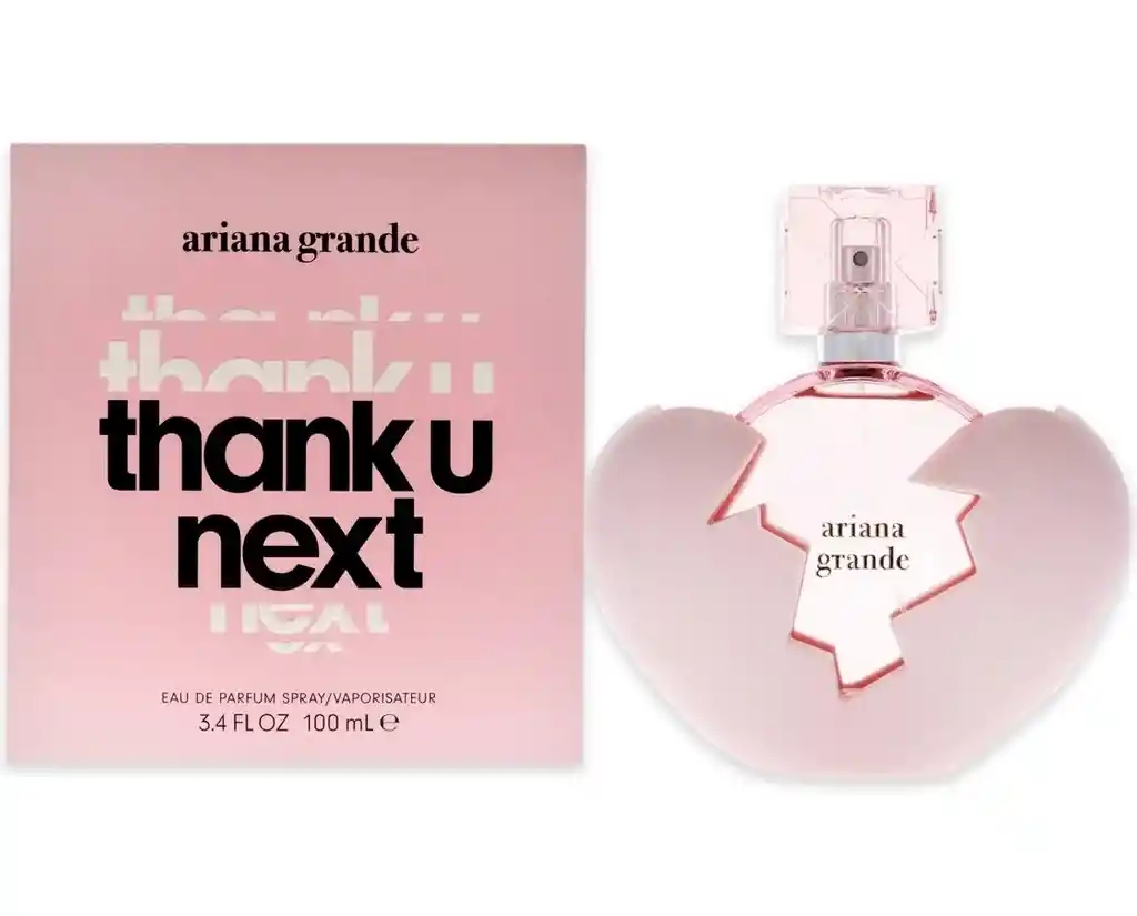-"Thank U, Next" de Ariana Grande es una fragancia juvenil y vibrante que combina dulces notas de frutas como pera y frambuesa con toques de coco y almizcle, creando un aroma juguetón, fresco y acogedor que transmite una sensación de alegría y positividad.