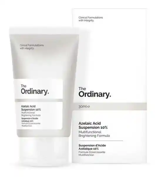 The ordinary. Azelaic Acid Suspensión 10%, 30 ml • ¿Qué Es? El Ácido Azelaico en Suspensión 10% es un gel cremoso liviano con ácido azelaico. • ¿Qué Hace? Este tratamiento ilumina la piel, reduce el aspecto de las imperfecciones y favorece un tono y textura uniformes. También desvanece la hiperpigmentación y reduce el enrojecimiento asociado con la rosácea. • Ingredientes Clave - Ácido Azelaico: un antioxidante que es producido naturalmente por la levadura que vive en una piel sana. Tiene efectos aclarantes, antibacterianos y antiinflamatorios. • Modo de Uso: Aplica una cantidad del tamaño de un guisante a tu piel por la noche después de los tónicos y los tratamientos a base de agua. Evita el contacto con sus ojos y boca. Si produce irritación, este producto se puede diluir para reducir su intensidad. Recomendamos usar protección solar durante el día cuando este producto es parte de tu rutina.