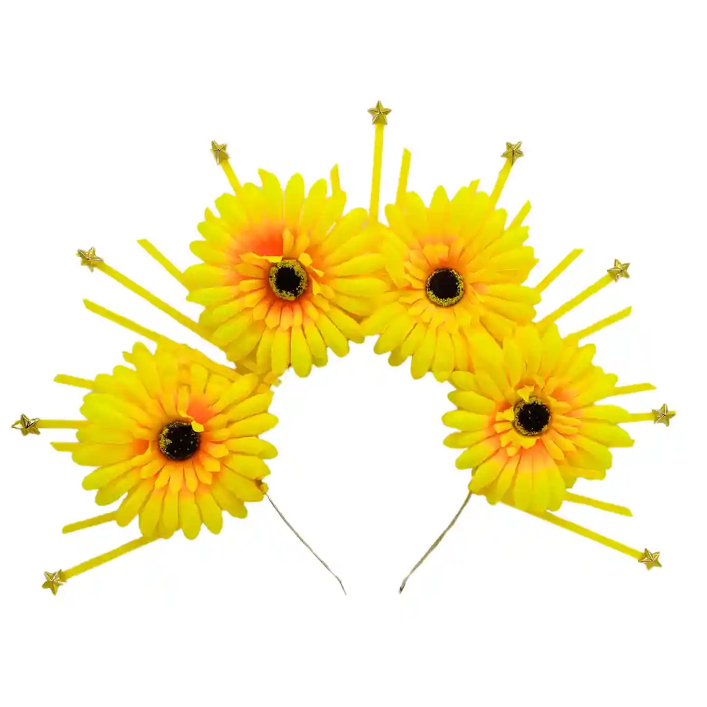 ¡Luce un estilo fresco, alegre y natural con esta encantadora tiara de girasoles amarillos! Ideal para festivales, sesiones de fotos, disfraces, eventos escolares, fiestas temáticas o simplemente para darle un toque floral a tu look.