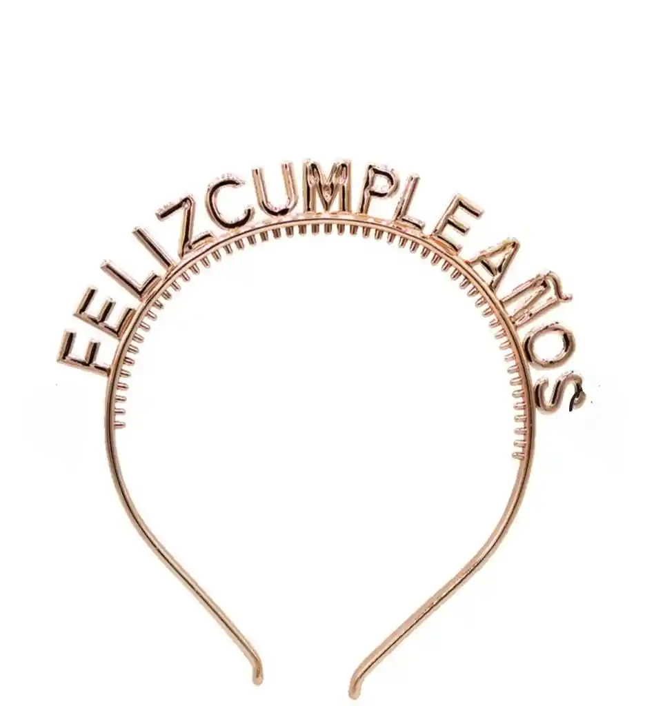 Diadema Feliz Cumpleaños color oro rosa, accesorios para fiesta