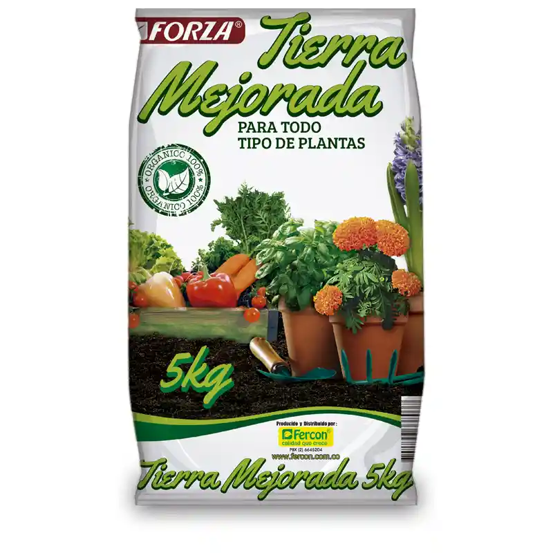 TIERRA MEJORADA X 5 KLS Mezcla homogénea de suelo preparada especialmente para todo tipo de plantas en siembra o desarrollo, útil también para la renovación de suelos desgastados, aumenta la retención de humedad y mejora la aireación de las raíces Recomendaciones Suelo suelto, limpio de raíces, terrones y piedras al cual no se le ha agregado arena, carbonilla ni cascarilla de arroz. Puede sembrar directamente en él o mezclarlo con el suelo de sus jardines o macetas