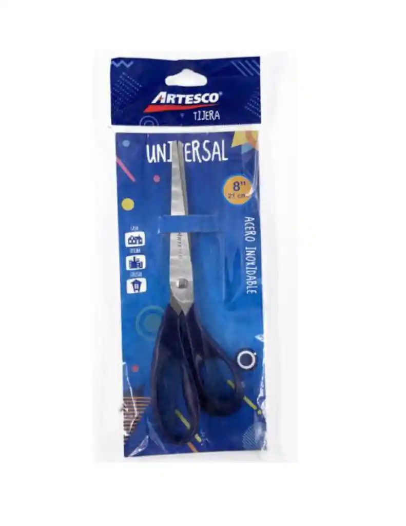 Tijera de oficina simétrica con cabo de caucho, perfecta para cortar documentos y otros materiales de oficina. Su diseño ergonómico de caucho permite un agarre cómodo y controlado, ideal para el uso prolongado.