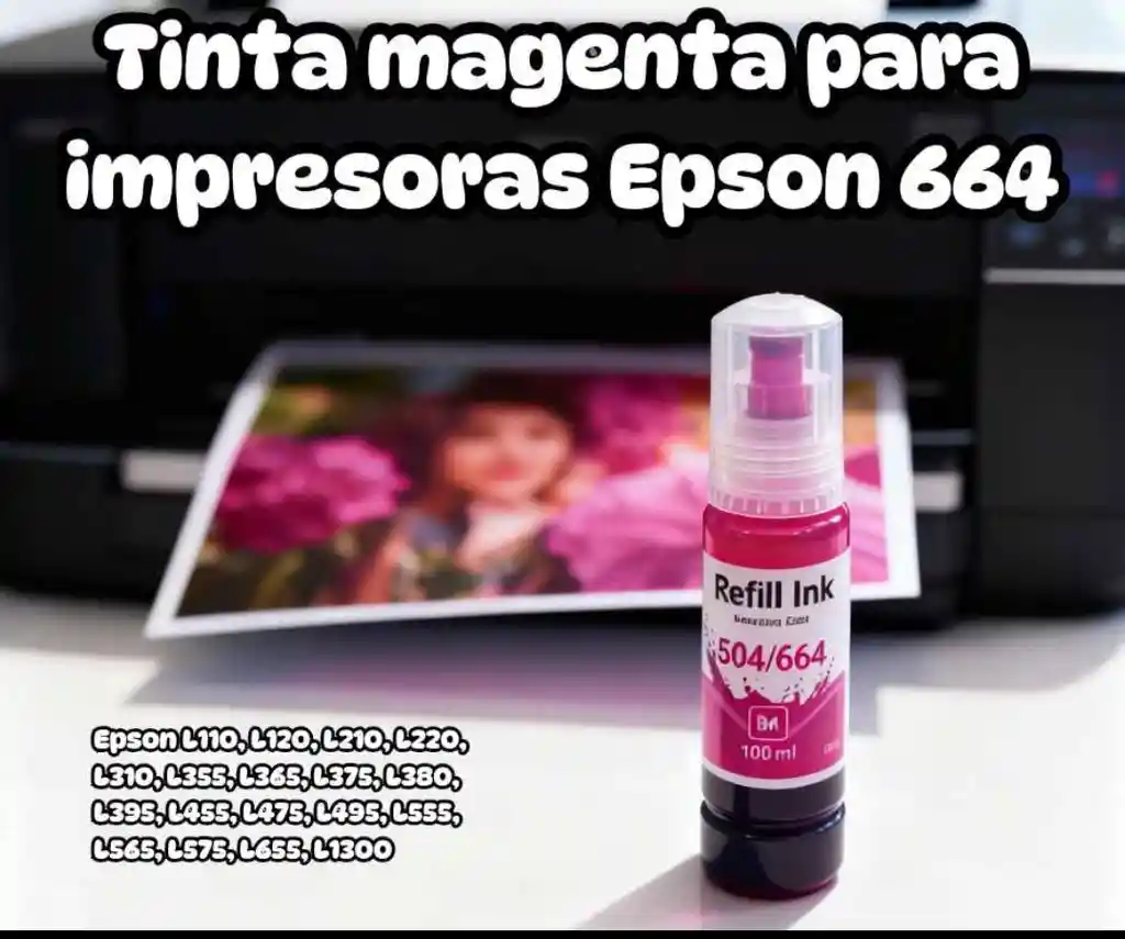 TINTA MAGENTA PRINTKING PK664 Tinta compatible PrintKing modelo PK664 en color negro, diseñada para ofrecer rendimiento y calidad en tus impresiones. CARACTERÍSTICAS PRINCIPALES - Marca: PrintKing - Modelo: PK664 - Color: Negro - Tipo: Tinta compatible de alta calidad - Rendimiento declarado: Hasta 600 páginas (según norma ISO/IEC 24711 con cobertura del 5% por página). Importante: El rendimiento real varía según el contenido de las impresiones, tipo de papel y configuración de la impresora - Calidad de impresión: Textos nítidos, bordes definidos y buena legibilidad, resistente al desvanecimiento - Embalaje: Original, sellado y listo para instalación IMPRESORAS COMPATIBLES Compatible con los siguientes modelos de impresoras Epson: - Epson L100 - Epson L110 - Epson L120 - Epson L130 - Epson L200 - Epson L210 - Epson L220 - Epson L300 - Epson L310 - Epson L350 - Epson L355 - Epson L360 - Epson L365 - Epson L380 - Epson L385 - Epson L455 - Epson L550 - Epson L555 - Epson L565 - Epson L1300 DETALLES DEL PRODUCTO - Fabricada con materiales de alta calidad que buscan garantizar la durabilidad del cartucho y la protección de tu impresora - Fácil instalación: basta con retirar el embalaje y colocar el cartucho en su compartimento correspondiente - No requiere ajustes adicionales en la configuración de la impresora - Ideal para uso doméstico, estudiantil o en pequeñas y medianas oficinas, especialmente para impresión de textos tinta epson 664, tinta epson magenta, tinta rosada epson, tinta impresora epson, tinta epson ecotank, tinta para impresora epson, tinta impresora recarga, tinta impresora 70ml, tinta impresora económica, tinta epson l120, tinta epson l220, tinta epson l310, tinta epson l355, tinta epson l365