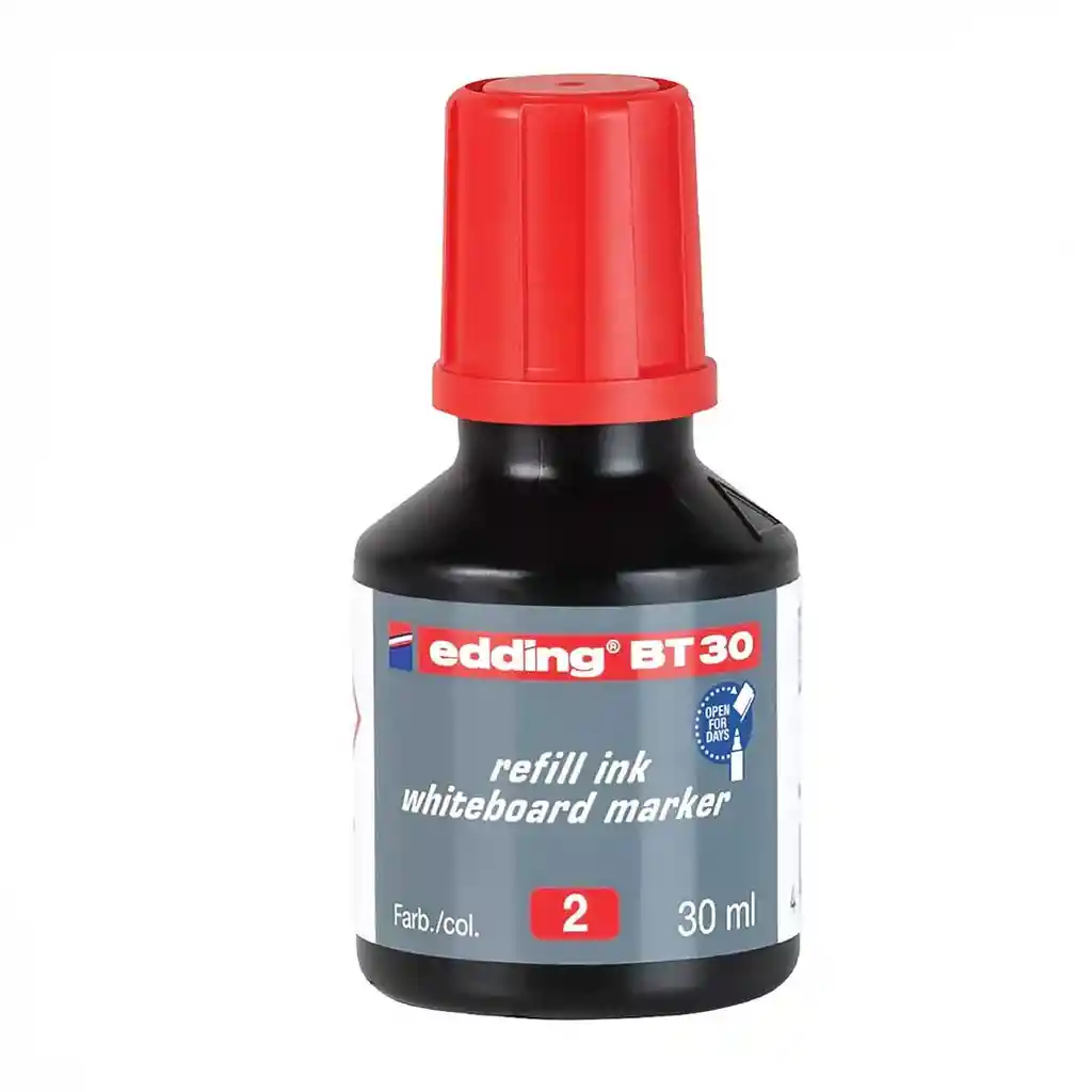 Mantén tus marcadores siempre funcionales con la tinta roja EDDING BT30, ideal para recargar y prolongar la vi...Ver más