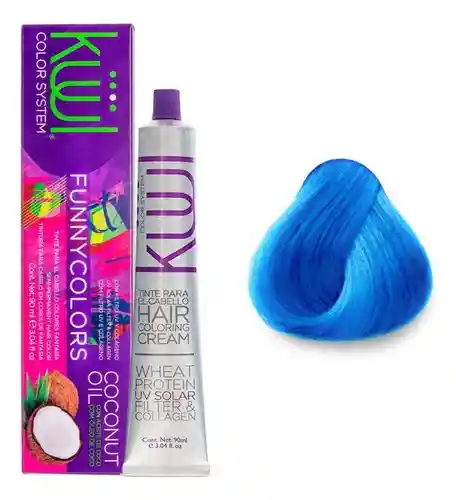 TINTURA KUUL FUNNY COLORS FANTASIA AZUL CELESTE 60 ML : Sistema de coloración que incorpora en su fórmula componentes nutritivos como la proteína de trigo y aceite mineral que brindan ingredientes esenciales para la regeneración del cabello, dando como resultado sedosidad, hidratación, brillo y color intenso.