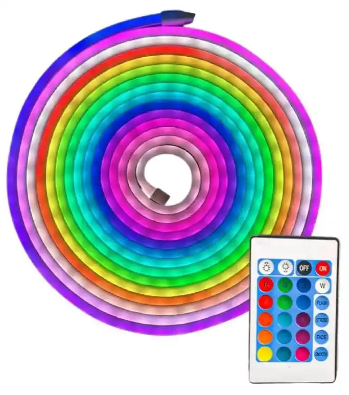 Transforma tus espacios con estilo y modernidad usando la Tira LED RGB de 5 metros. Ideal para sala, habitación, oficina o cualquier ambiente que quieras resaltar. Con su control remoto incluido, podrás elegir entre múltiples colores, modos de iluminación y efectos dinámicos, creando atmósferas únicas para cada ocasión. Disfruta de una iluminación de larga duración, con 50.000 horas de uso, bajo consumo de energía y materiales resistentes que garantizan durabilidad y seguridad. Haz que tu hogar luzca moderno, acogedor y lleno de vida con la iluminación envolvente que solo esta tira LED puede ofrecer. Ficha Técnica: Modelo: Tira LED Flexible RGB Longitud: 5 metros Tipo de luz: Multicolor RGB Duración: 50.000 horas aprox. Alimentación: 12V Control remoto: Sí, con múltiples modos de color y efectos Funciones: Flash, Strobe, Fade, Smooth Instalación: Adhesiva y flexible para paredes, techos, muebles o exteriores Beneficios: Dale un estilo moderno y elegante a tus espacios. Controla la intensidad y el color desde la comodidad de tu mano. Bajo consumo de energía, ideal para uso prolongado. Resistente a impactos, a la intemperie y con mínima emisión de calor. Perfecta para decoración en sala, TV, fiestas, oficinas o dormitorios.