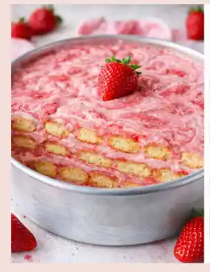 Nuestro Tiramisú de Fresa es la combinación perfecta de frescura y cremosidad. Preparado en capas con bizcochos vainilla humedecidos en un sirope de fresa natural, un relleno ultracremoso de queso mascarpone y fresas frescas en cada cucharada. La terminación con polvo de galleta y una fresa entera lo hace irresistible.