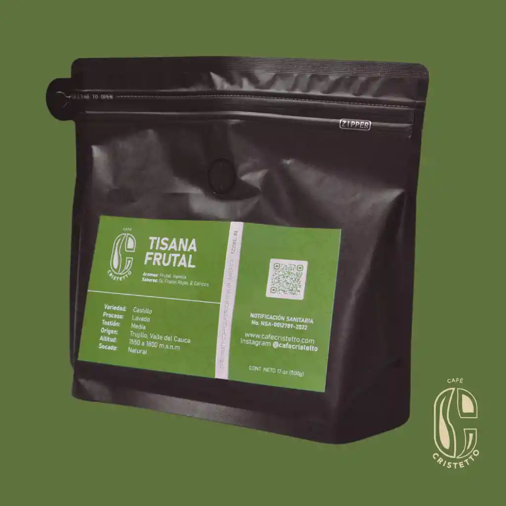 🍒 Tisana Frutal Un café vibrante, lleno de energía y sabor. El Tisana Frutal está compuesto por granos colombianos de especialidad (SCAA 86), cuidadosamente tostados para resaltar intensas notas frutales cítricas, dulces y jugosas, que recuerdan una refrescante infusión frutal. Este café es perfecto para disfrutar a cualquier hora del día gracias a su carácter refrescante y su brillante acidez natural. Notas: Frutos cítricos, durazno, notas de té negro, caramelo suave Perfil: Fresco, jugoso, afrutado Recomendado para: Métodos filtrados, prensa francesa, Cold Brew.