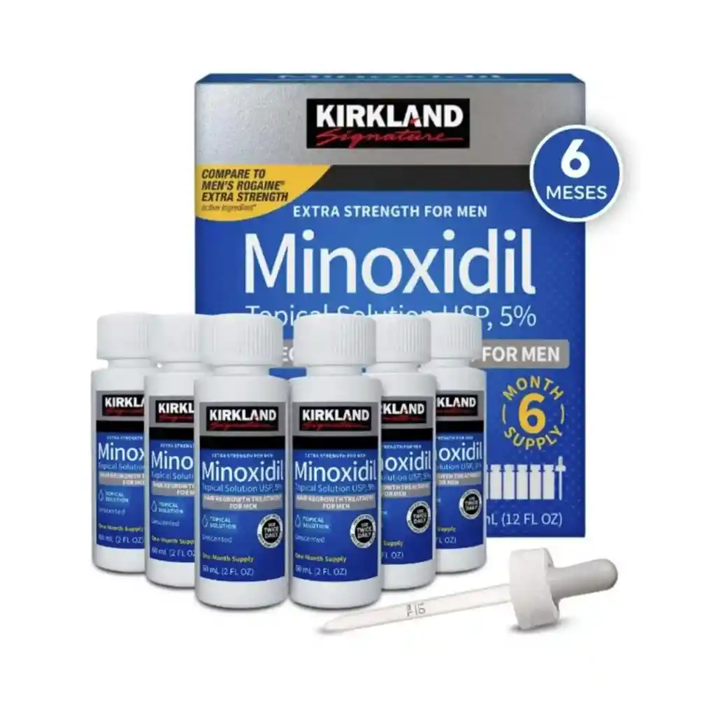 Solución tópica formulada con Minoxidil al 5% diseñada para hombres que buscan complementar el cuidado del cuero cabelludo y estimular el crecimiento capilar en la zona superior. Su aplicación constante forma parte de una rutina de cuidado personal orientada al bienestar capilar. Incluye gotero dosificador para uso práctico y localizado. Presentación ideal para tratamiento prolongado de 6 meses. Incorpora cuidado capilar a tu rutina desde hoy ¡listo para envío inmediato! QUÉ INCLUYE - 6 frascos solución tópica capilar - Contenido por frasco: 60 ml (2 fl oz aprox.) - Gotero aplicador incluido - Producto sellado en empaque original CARACTERÍSTICAS CLAVE - Fórmula tópica con Minoxidil al 5% - Aplicación directa en cuero cabelludo - Diseñado para uso en hombres adultos - Presentación tipo tratamiento continuo - Solución sin fragancia añadida MODO DE EMPLEO - Aplicar 1 ml dos veces al día directamente sobre el cuero cabelludo seco en la zona deseada - Uso continuo según indicaciones del fabricante - No exceder la dosis recomendada - Solo para uso externo ESPECIFICACIONES TÉCNICAS - Marca: Kirkland Signature - Tipo: Solución capilar tópica - Ingrediente activo: Minoxidil 5% - Presentación: Líquido - Contenido total: 6 frascos - Uso: Aplicación externa localizada - Público objetivo: Hombres adultos - Origen: Producto 100% original importado desde Estados Unidos, con empaque sellado y estándares de calidad internacionales. PREGUNTAS FRECUENTES ¿Este producto es para mujeres? - Está formulado para uso en hombres adultos. ¿Dónde se debe aplicar? - Directamente en la zona superior del cuero cabelludo. ¿Cuánto dura el tratamiento? - Depende de la frecuencia de uso indicada por el fabricante. ¿Se puede aplicar más cantidad para mejores resultados? - No, se recomienda respetar la dosis sugerida. SOBRE LA MARCA Kirkland Signature es la marca propia de Costco, reconocida a nivel internacional por ofrecer productos desarrollados bajo estrictos estándares internos de calidad y control, para garantizar consistencia, confianza y satisfacción del consumidor. SOBRE EL ENVÍO Envío Gratis disponible ¡Despachamos inmediato en menos de 24 horas hábiles!