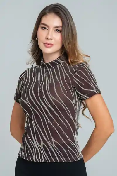 En Tejido de Punto Malla Con Brillo Cuello Alto Manga Corta Silueta Ajustada.