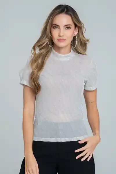 En Tejido de Punto Malla Con Brillo Cuello Alto Manga Corta Silueta Ajustada.