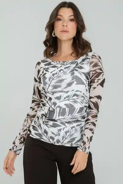 En Mesh Estampado Escote Redondo Manga Larga Drapeado en Frente Forrado en Cuerpo Silueta Ajustada.