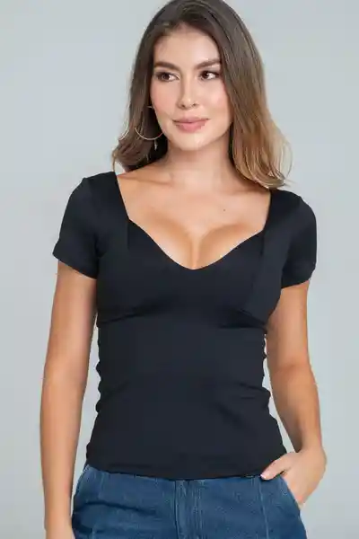 En Tejido de Punto Fondo Entero en la Parte Delantera Escote Corazón y Cortes en Busto Que Conforman la Sisa Manga Corta Escote en V en la Parte Trasera Cortes Debajo Del Busto Ruedo de 2 cms Silueta Semi Ajustada.