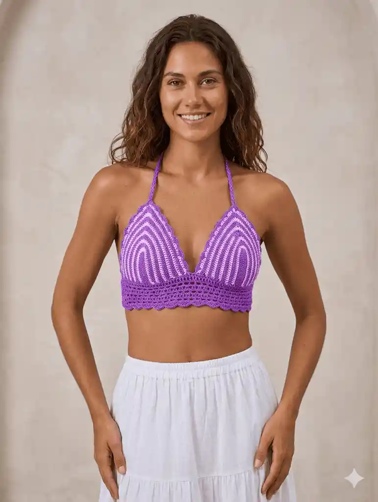 Top tejido a crochet lila y morado, Tejido 100% artesanalmente, con hilo acrílico e hipoalergénico