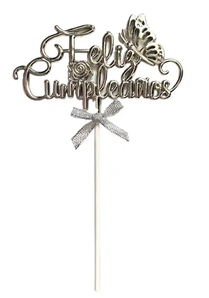 🎂Topper Adorno Para Torta Feliz Cumpleaños Tono Plateado