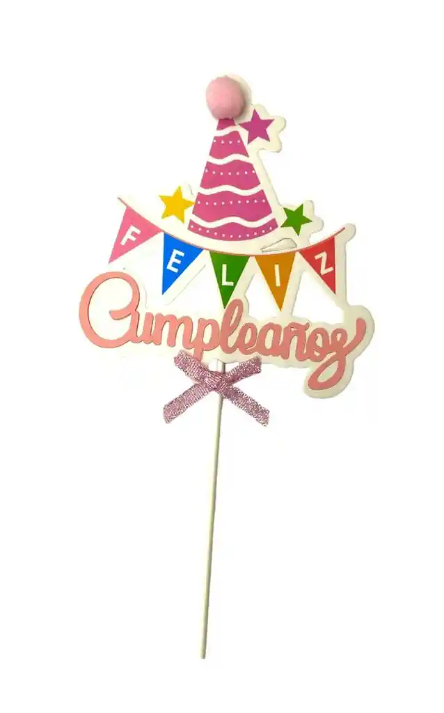 Hermoso Topper decorativo para niña Motivo Gorrito con mensaje de Feliz Cumpleaños color rosado Medidas: 18 x 12cm