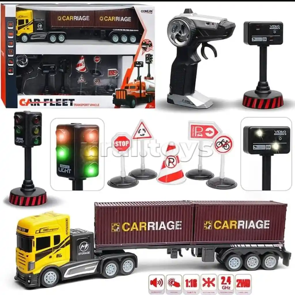 Tractomula RC de Juguete con Señales de Tráfico – 45 × 11 × 7 cm | Escala 1:16 Convierte el juego en una experiencia completa de conducción y transporte con esta tractomula a control remoto, ideal para niños que disfrutan los vehículos de carga y escenarios realistas. Incluye un tráiler tipo contenedor doble y un set completo de señales viales y semáforos funcionales, perfectos para crear circuitos y situaciones de tránsito. Características principales: ✅ Medidas del vehículo: 45 cm de largo × 11 cm de ancho × 7 cm de alto con pilas AA (NO INCLUIDAS) ✅ Control remoto 2.4 GHz: mayor alcance, cero interferencias y control preciso ✅ Escala 1:16, diseño detallado y realista ✅ Tractomula con remolque doble tipo contenedor abre y cierra puertas ✅ Luces funcionales en el camión ✅ Incluye señales de tránsito: STOP, ceda el paso, giro prohibido, bici ruta, cono vial y más ✅ Incluye semáforo con luces que enciende y cambian de color ✅ Ideal para montar circuitos, aprender normas de tránsito y estimular la coordinación ✅ Material resistente y seguro para niños desde 3 años Un juguete completo, educativo y lleno de detalles que ofrece horas de diversión. Perfecto para regalar y para pequeños amantes de los vehículos de transporte