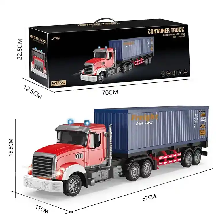 Camión volquete con control remoto, vehículo eléctrico de construcción, 500 mAh, luz interactiva, sonido, juguete para niños Características: control remoto: con la función de control remoto, el juguete da vida a escenarios reales de transporte para los niños. Pueden tener una experiencia emocionante controlando su propio vehículo de transporte. Tamaño grande: diseñado con un tamaño más grande, el juguete brinda a los niños más espacio para explorar y disfrutar. Pueden imaginar diferentes escenas de transporte, lo que fomenta su creatividad y sus habilidades cognitivas. Material duradero: hecho de plástico, el juguete está hecho para durar. Es resistente a los juegos bruscos y viene con luces y efectos de sonido realistas para un mayor valor de entretenimiento. Los niños pueden disfrutar de horas de diversión con un juguete fiable y duradero. Batería recargable: el juguete viene con una pila recargable de 3,7 V y 500 mAh incluida, mientras que el mando a distancia funciona con dos pilas AA de 1,5 V (no incluidas). La práctica función permite recargar fácilmente el juguete, lo que ahorra costes y protege el medio ambiente. Exquisito regalo: con su llamativo diseño, sus colores vibrantes y su aspecto realista, el juguete es un regalo perfecto para niños, familiares y amigos. Es un regalo exquisito para cumpleaños, días festivos o cualquier escena especial, ya que crea recuerdos duraderos. Especificaciones: tipo de artículo: camión de juguete de transporte para niños Material: plástico Tipo de batería: batería de iones de litio para vehículo x 1, capacidad de batería de 500 mAh (se envía con batería incorporada) Control remoto: 2 pilas AA de 1,5 V (se envía sin batería). Lista de paquetes: 1 x parte delantera del coche, 1 carro, 1 batería, 1 cable USB, 1 mando a distancia (se envía sin batería)