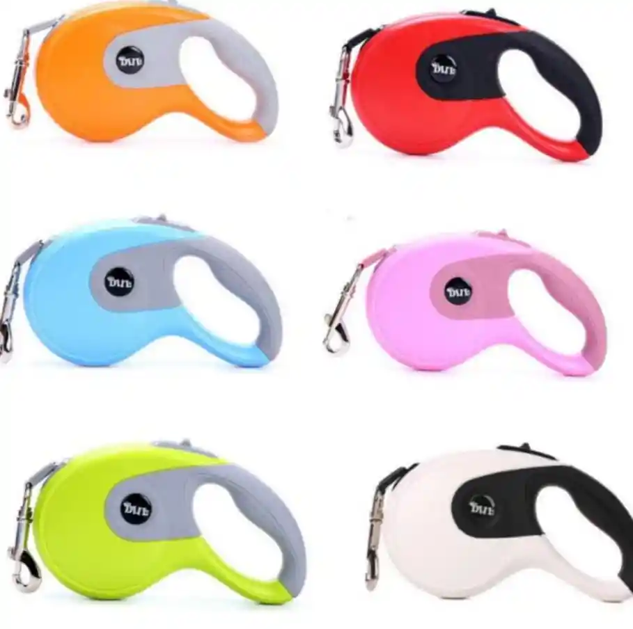 Correa retráctil para perro cuerda de bobinado automático tracción flexible.Diseño Ergonomico. Con resistencia hasta 50 kilos. Tamaño 8 metros. Colores surtidos. Contiene accesorio para portar bolsas.
